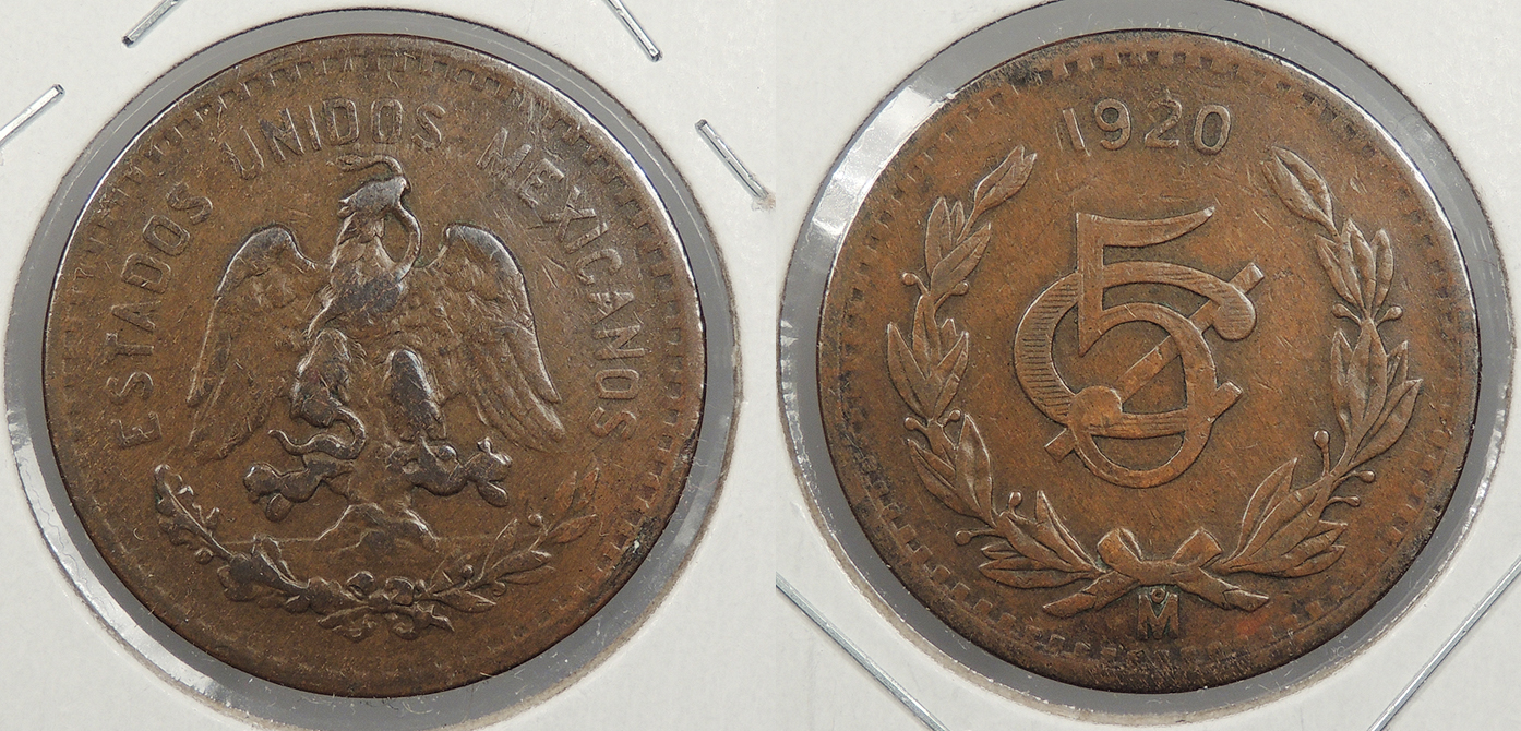 MEXICO 1920-Mo 5 Centavos -- #:WC87852