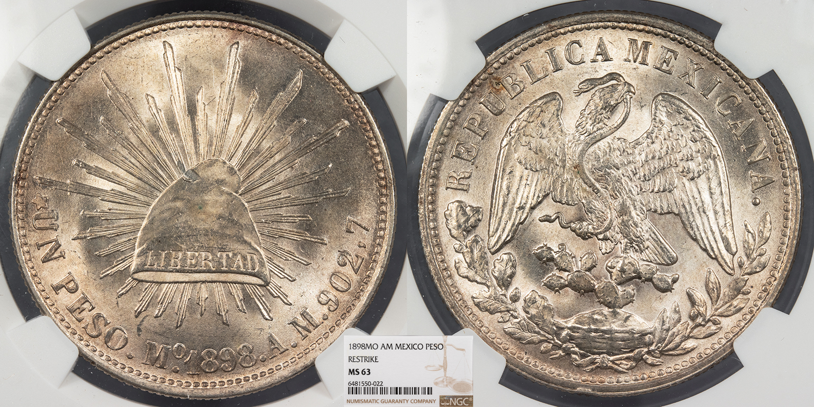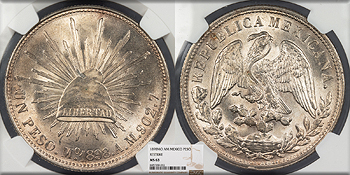 MEXICO Republic 1898-Mo AM Restrike (1949) to pay Chinese troops Peso NGC MS-63 -- #WC95877