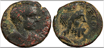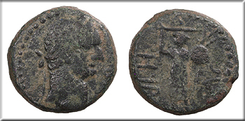 Judaea Caesarea Paneas Diva Poppaea (wife of Nero) & Diva Claudia (daughter of Nero) died 65 A.D. & 63 A.D. AE19 (3 Units) VF -- #AC103719