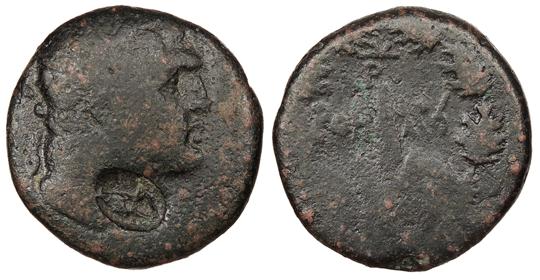 RPC I 4715 (Syria) Fine. Very rare. Dark red-green patina. Some minor porosity, as expected. Struck during the time of Claudius. We could find no records of this type having sold in any auctions. An interesting rarity for the specialist collector, with an equally enigmatic countermark. Reduced from: $100