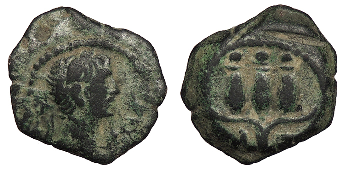 AE Dichalkon 14mm. 2.00g. Year 17 (113/114 A.D.) Laureate head, r.