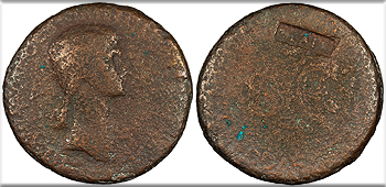 Agrippina Senior, wife of Germanicus, mother of Caligula Died 33 A.D. Sestertius Fair -- #AC103718