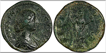 Faustina II, wife of Marcus Aurelius 147-175 A.D. Sestertius Near EF -- #AC105871