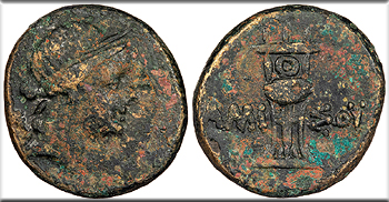 AE19 19mm. 7.20g. Laureate head of Apollo, r.