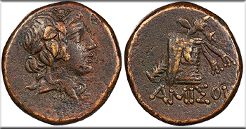 AE20 20mm. 8.40g. Struck under Mithradates VI Eupator. Head of Dionysos r., wearing mitra and ivy wreath.