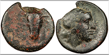 AE19 19mm. 4.40g. Filleted bull head facing; EL [broken off] above.