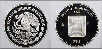 MEXICO 2004-Mo 180th Anniversary of Federation - Morelos 10 Pesos (1 Ounce .999 Fine) Proof -- #:WC99959