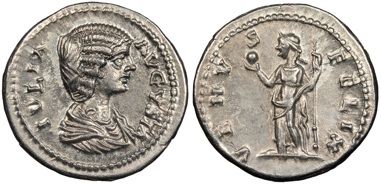 Julia Domna, wife of Septimius Severus 196-211 A.D. Denarius EF -- #AC90580