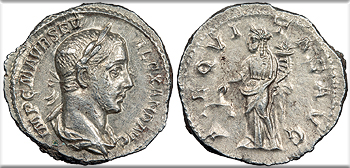 AR Denarius 19mm. 3.33g. Rome Mint 235 A.D. Laureate, draped and cuirassed bust, r. IMP MAXIMINVS PIVS AVG Providentia standing l., holding wand over globe and cornucopiae. PROVIDENTIA AVG RIC IV 13; RSC III 77 EF. Lightly toned and brightly lustrous. Nicely struck. Some greenish corrosion at obverse edge, otherwise choice. ex. Harlan J. Berk with ticket stating 'from the Philip Ashton Collection, purchased from Alex Malloy, June 1999, reported to be from the Novae hoard.'