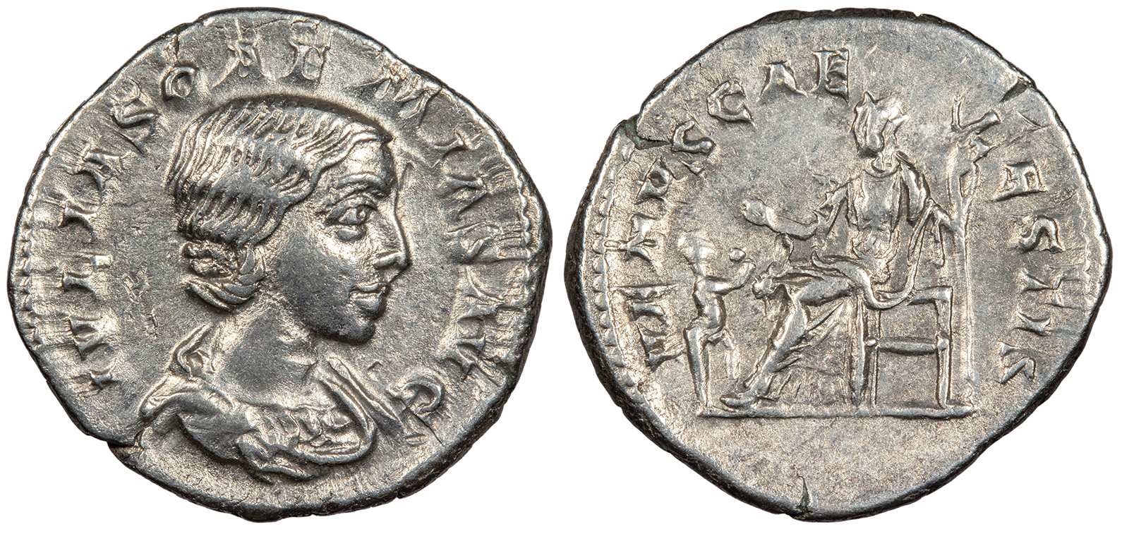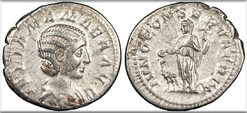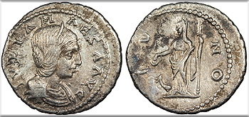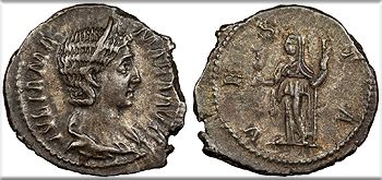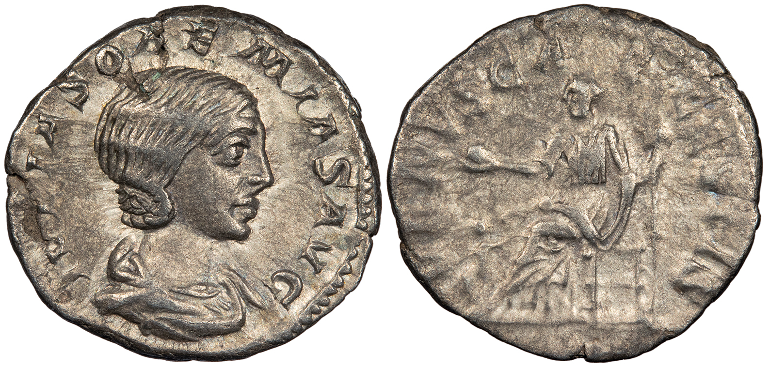 Julia Soaemias, mother of Elagabalus 218-222 A.D. Denarius Good VF -- #AC99910