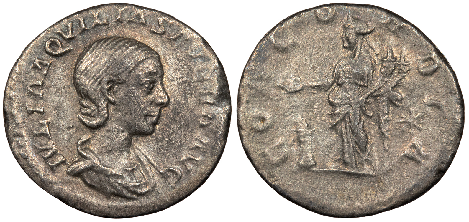 Aquilia Severa, wife of Elagabalus 220-221 & 221-222 A.D. Denarius Good VF -- #AC103130