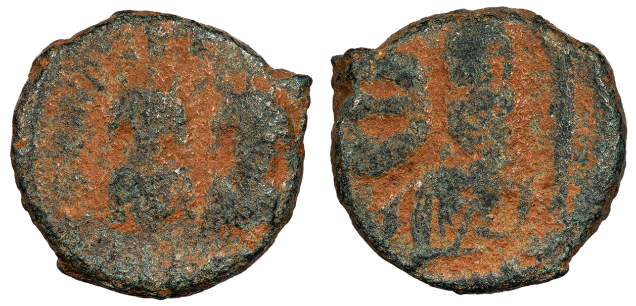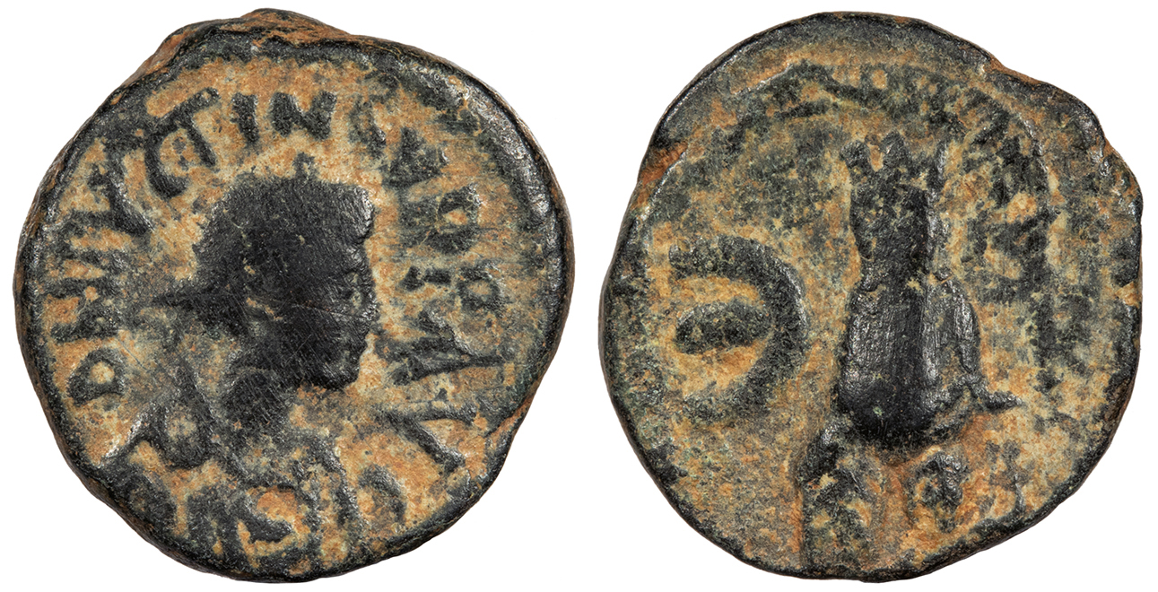 SB 264 Fine. Rare. Dark green-gray patina. Some light roughness, as expected. Some areas of patina loss. This issue is known only from Regnal Year 13. Reduced from: $135