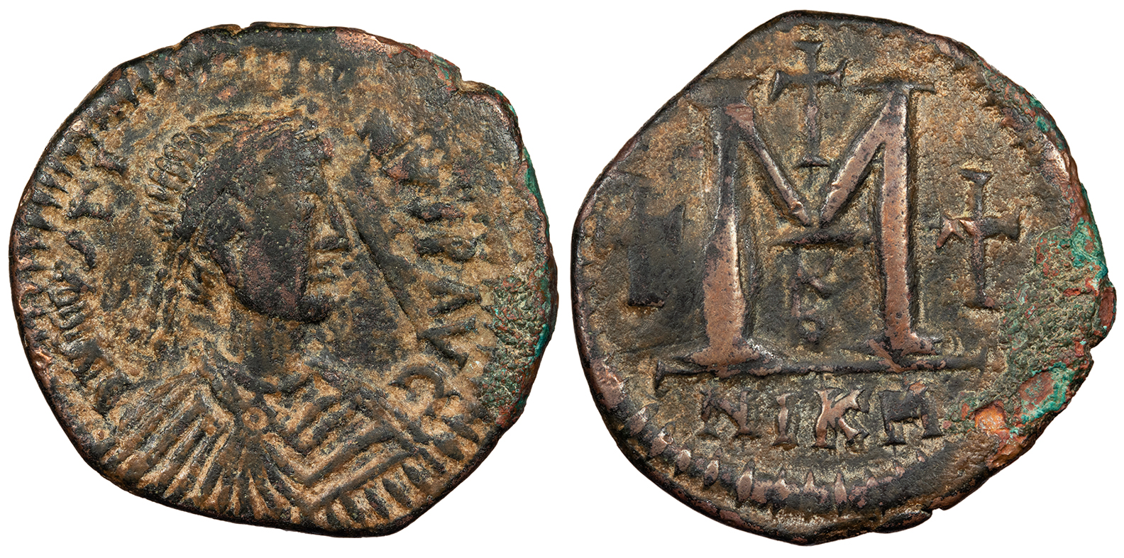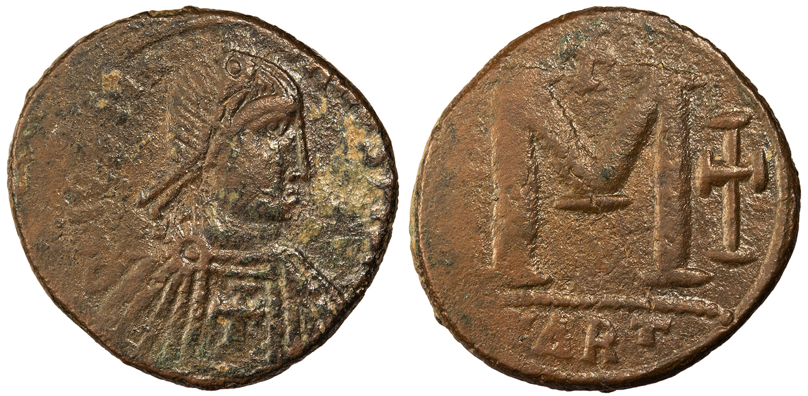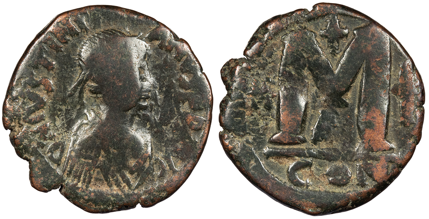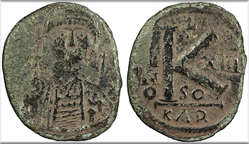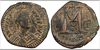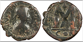 Justinian I 527-565 A.D. Follis (40 Nummi) VF -- #AC101202
