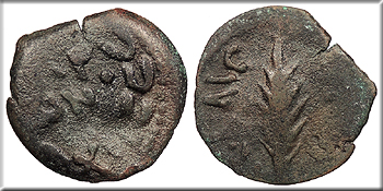 Judaea Roman Procurators Porcius Festus, under Nero 59-62 A.D. Prutah Good Fine -- #AC87046
