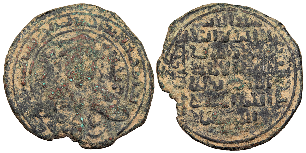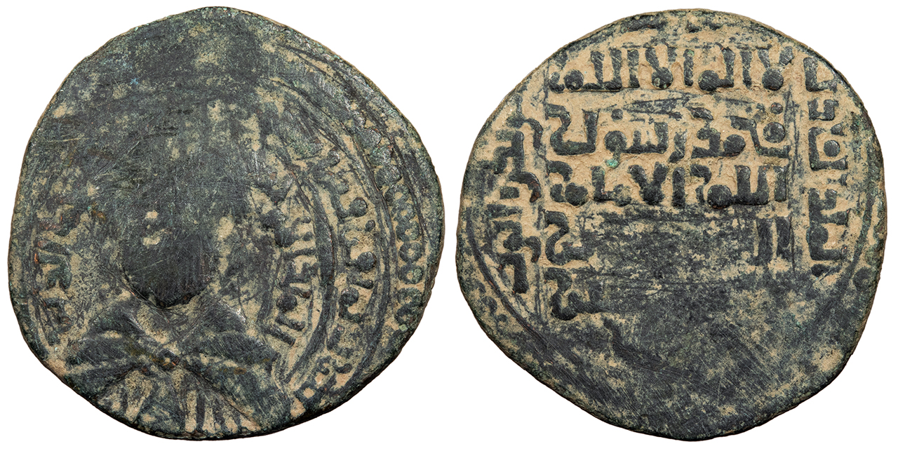 AE Dirham 29mm. 11.00g. Mayyafariqin mint AH591-592 Draped bust of Prince facing, wearing a Byzantine-style crown; legend around, date to either side of head.