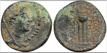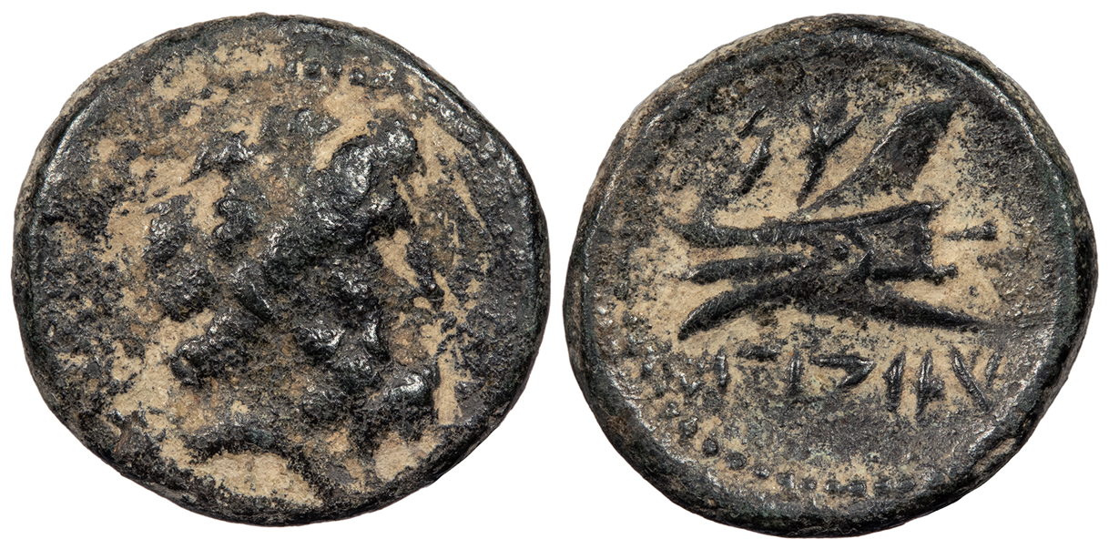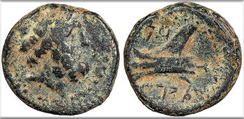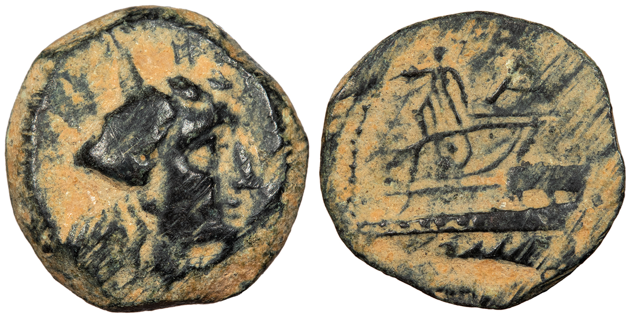 Ship’s ram l., Phoenician letters above, Aradian date below.