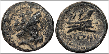 AE17 17mm. 3.56g. Head of Zeus, r.; dotted border.